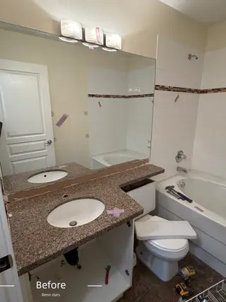 This renovation project involved a complete overhaul of two bathrooms in a busy family's townhouse. The homeowners aimed for a modern and functional design, incorporating features such as a prefabricated vanity, custom glass doors, and quartz countertops. The transformation included replacing bathtubs, optimizing lighting, and updating plumbing and electrical systems, resulting in stylish and efficient spaces that meet the family's needs.