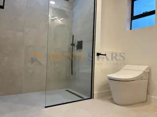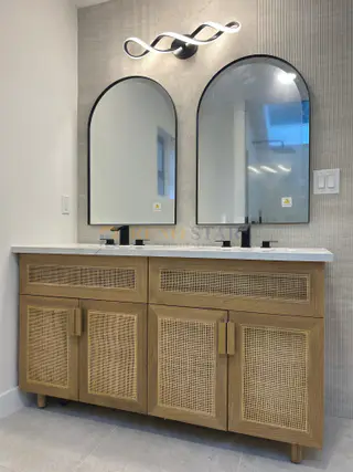 We addressed these challenges by selecting high-quality materials that fit the budget and optimizing the layout for better functionality. The use of textured tiles and LED mirrors enhanced the overall appeal.