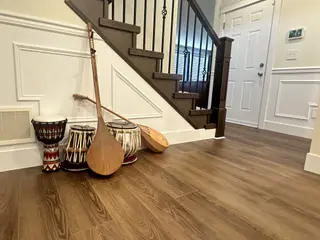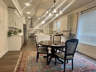 This Langley townhouse kitchen renovation features a show-stopping waterfall quartz island as its centerpiece. The family wanted a bright, open feel that complemented their eclectic decor, so we selected a cohesive palette of soft whites and natural wood tones. Custom shaker-style cabinets maximize storage, while pendant lighting above the island creates an inviting atmosphere for cooking and entertaining. The waterfall edge detail adds a touch of luxury that elevates the entire space.